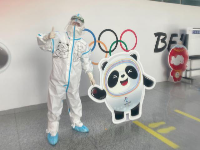 防护服也成了王镇韬和同伴们的“画布”。“在防护服上写名字时,我就想,可以在防护服上进行简单的绘画创作,展示中国老员工志愿者的形象,展现北京冬奥会的风采!”这一想法得到批准后,王镇韬和小伙伴立马开始了防护服上的创作,“每次上岗前,我们都会提前画好防护服上的图案,当然也会仔细检查防护服的密闭性,确保使用安全。”