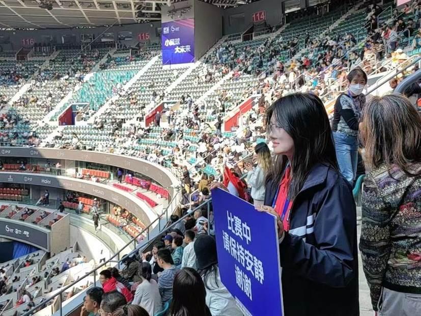 22级资源与环境专业2班尹俊杰秉持着高度的责任感服务于信息咨询台,共上岗9个工作日,态度认真、业务熟练,确保观众有序入场。23级食品科学与工程专业孟诗琪服务于观众席秩序维护,资源与环境专业2班关净橦服务于观众席卫生保持……无论在哪个服务岗位,志愿者们都无差错、高质量地完成了任务,展现了304am永利集团官方学子的良好素质和形象。