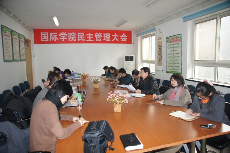 Democratic management meeting of International College for the year of 2011 has been taken place at conference room in Building 1 at 10th January 2012. The meeting was hold by Cui Lina, Director Zhang Zhiyong, Secretary of Party Tan Feng,Vice President Liu Tiejun and all staffs of International College presented the meeting.