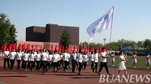Along with the passionate "athletes march", the national flag team, school flag and sing guard team , red flag team, team of the college students and staff , the team of referees followed by admission. Among them, the International College square consists of 45 students; they wear a white background T-shirt with green letter, their face filled with youthful vigor. They were shouting exciting slogan, stepping on the footsteps of the president walked. Their performance greatly encouraged the morale of the International College, attracted a burst of applause from the students.The entry was complete, and then came the athletes and referees oath. After the oath, party Secretary Shi Yong made a speech. He pointed out that the essence of sports is the shaping of personality, sports activities are an important part of campus cultural activities. He encouraged the athletes to carry forward the spirit of hard work, solidarity, and the spirit of the game, the level of competition, the game out of moral fashion, the individual character style competition, a unity and friendship.